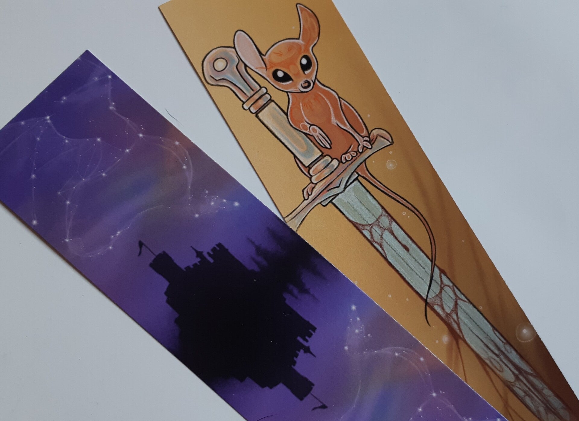 Marque-pages fantasy 5 cm x 18 cm imprimés sur du papier recyclé, avec des encres végétales et sans pelliculage pour un meilleur respect de l'environnement.